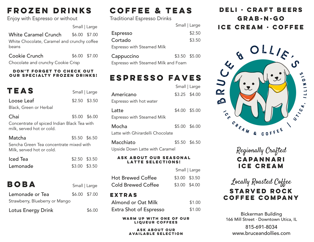 Welcome to Bruce & Ollie's Ice Cream, Specialty Coffee & Deli, a delightful retreat located at 166 Mill St, North Utica, IL. This charming establishment blends a cozy ambiance with a diverse menu that tantalizes the senses.